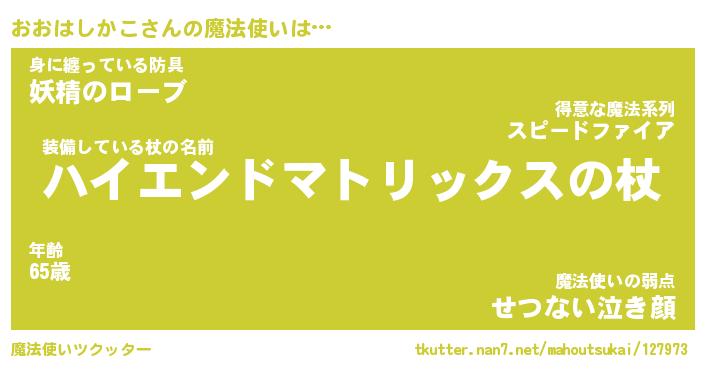 | ファンタジー風あだ名 | 『オオフェル』『ファントムオオス』 |