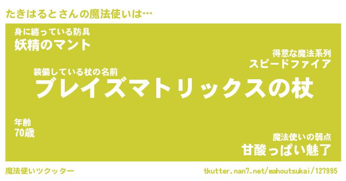 | ヒーロー風カッコイイあだ名 | 『スーパータキハルト』『魔戒騎士タキ』 |