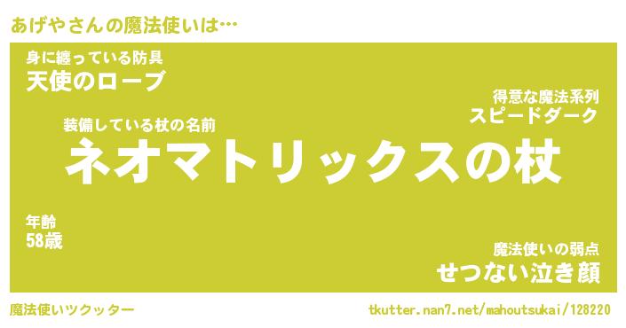 | 意味不明あだ名 | 『ペロリンあげや』『あげやフォーエバー』 |