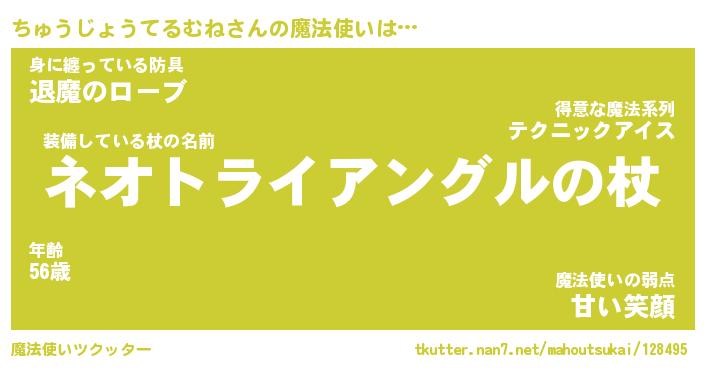 | 男性向けラノベタイトル風あだ名 | 『ちゅうじょうてるむねの憂鬱』 |