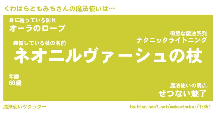 | 肩書あだ名 | 『くわはらともみち御曹司』 |