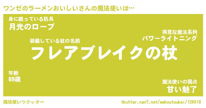 | 伝説のあだ名 | 『伝説の傭兵ワンゼのラーメンおいしい』 |