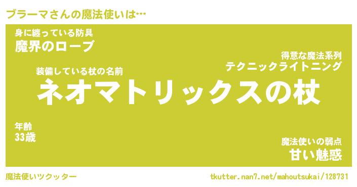 | 男性向けラノベタイトル風あだ名 | 『ブラーマアートオンライン』 |