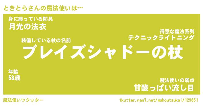 | ファンタジー風あだ名 | 『トキフェル』『エターナルトキトラー』 |