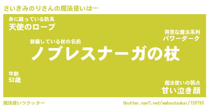 | ツイッター | さいきみのりさんのツイッターID『dendenmushi_nyan』 |