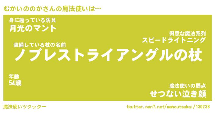 | 男性向けラノベタイトル風あだ名 | 『ムカイノノカアートオンライン』 |