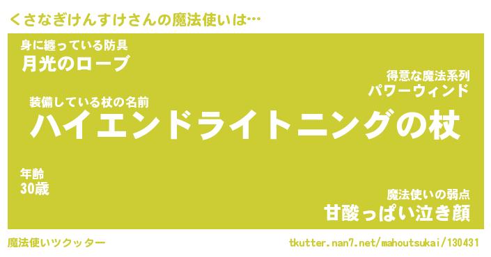 | 伝説のあだ名 | 『封印されし傭兵くさなぎけんすけ』 |