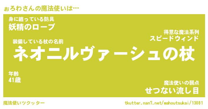 | ファンタジー風あだ名 | 『ォロフェル』『エターナルォロワー』 |