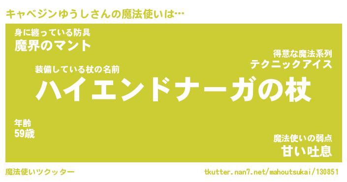 | 男性向けラノベタイトル風あだ名 | 『キャベジンユウシアートオンライン』 |