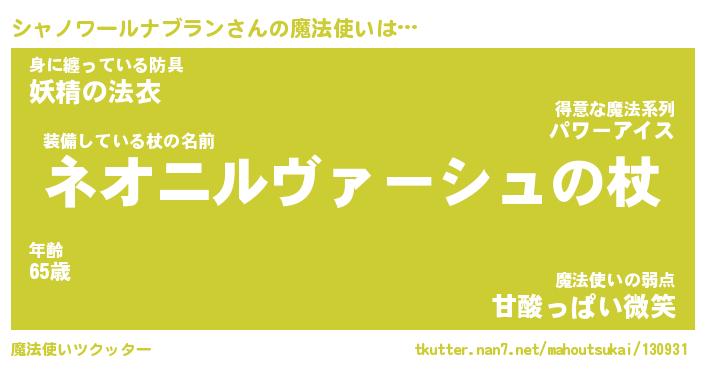 | 男性向けラノベタイトル風あだ名 | 『シャノワールナブランの憂鬱』 |