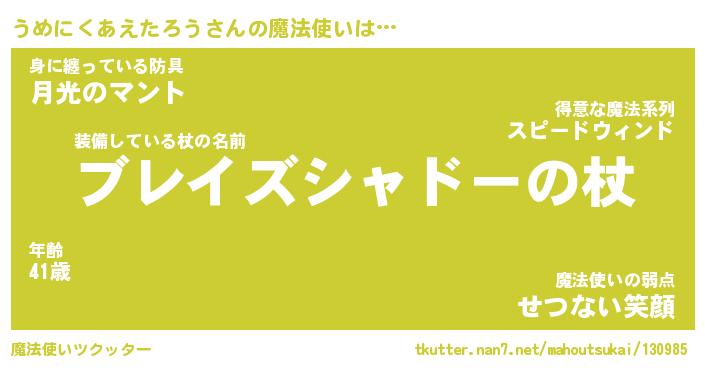 | ファンタジー風あだ名 | 『ウメフェル』『ファントムウメス』 |