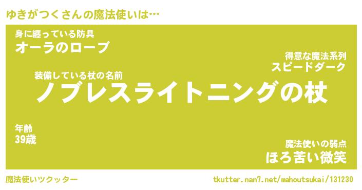 | ファンタジー風あだ名 | 『ユキフェル』『エターナルユキガツクー』 |