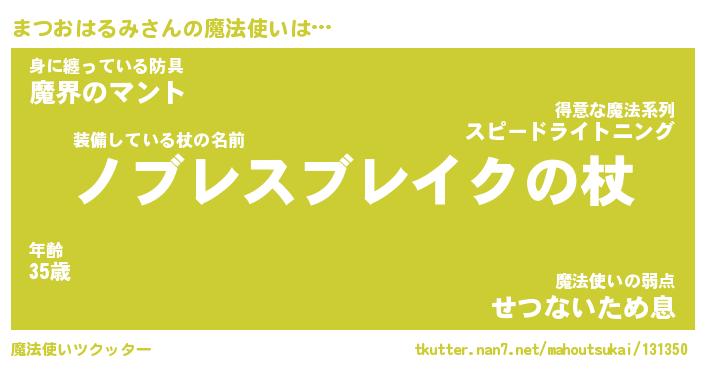 | ヒーロー風カッコイイあだ名 | 『スーパーマツオハルミ』『天弓騎士マツ』 |
