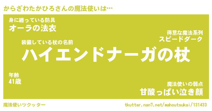| 伝説のあだ名 | 『封印されしスナイパーからざわたかひろ』 |