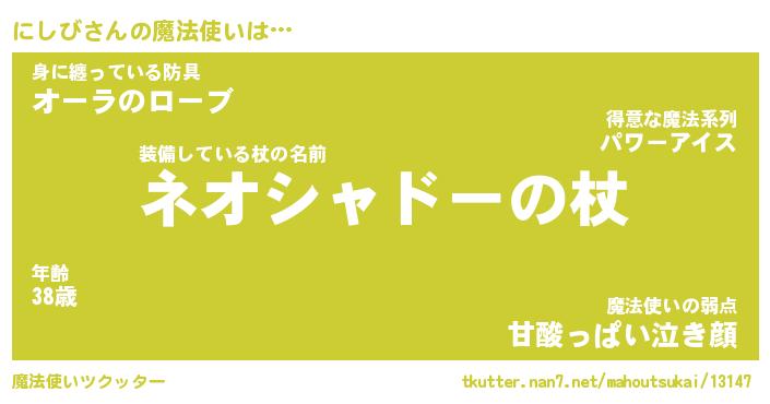 | ヒーロー風カッコイイあだ名 | 『スーパーニシビ』『ウルトラにしびマン』 |