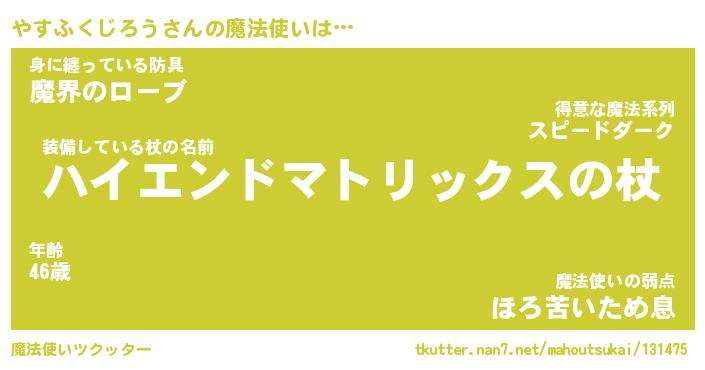 | 伝説のあだ名 | 『封印されし竜騎士やすふくじろう』 |