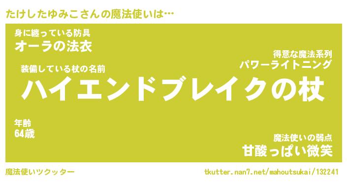 | 伝説のあだ名 | 『封印されし傭兵たけしたゆみこ』 |