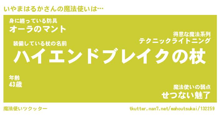 | ヒーロー風カッコイイあだ名 | 『スーパーイヤマハルカ』『黄金騎士イヤ』 |