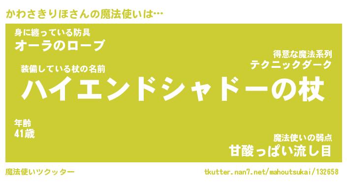 | ヒーロー風カッコイイあだ名 | 『スーパーカワサキリホ』『幻影騎士カワ』 |