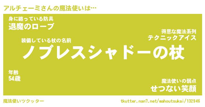 | 男性向けラノベタイトル風あだ名 | 『アルチェーミアートオンライン』 |