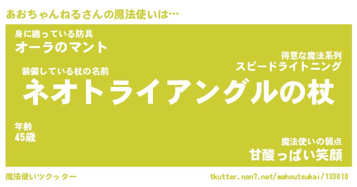| 胡散臭い通販商品みたいなあだ名 | 『モテモテ間違いなし霊験あらたかなお札…その名も「あおちゃんねる」』 |