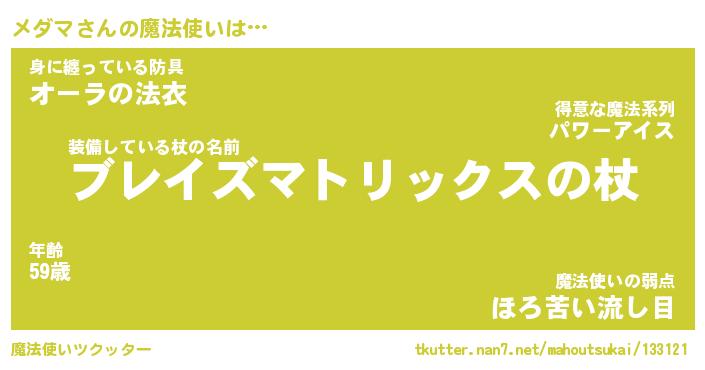 | 男性向けラノベタイトル風あだ名 | 『メダマの憂鬱』 |
