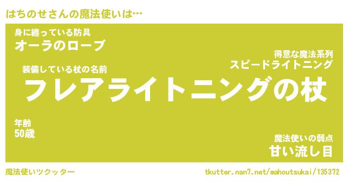 | ファンタジー風あだ名 | 『ハチフェル』『エターナルハチノセー』 |