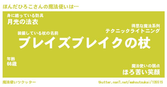 | ヒーロー風カッコイイあだ名 | 『スーパーホンダヒロコ』『黄金騎士ホン』 |