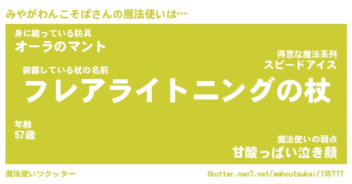 | 男性向けラノベタイトル風あだ名 | 『みやがわんこそばの憂鬱』 |