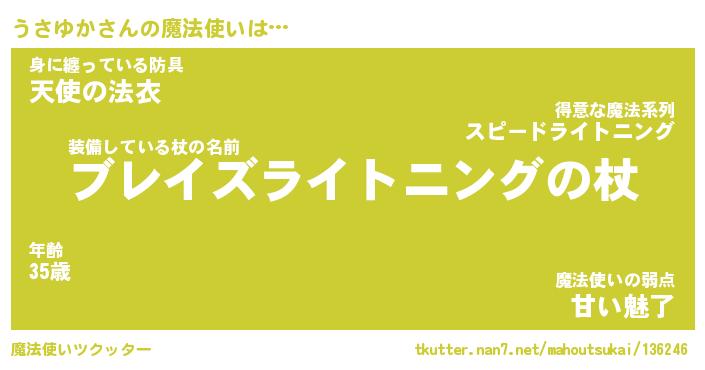 | ファンタジー風あだ名 | 『ウサフェル』『エターナルウサユカー』 |