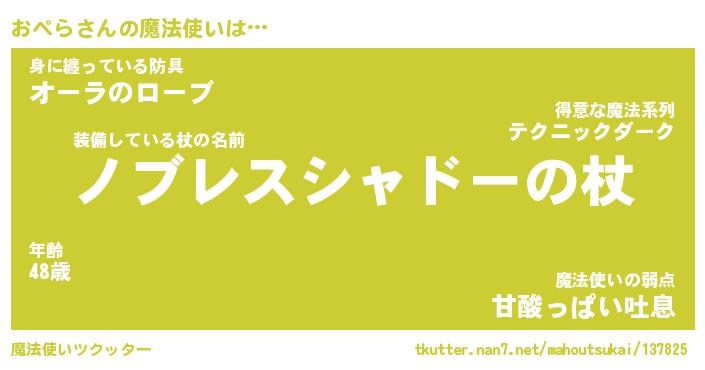 | ファンタジー風あだ名 | 『オペフェル』『エターナルオペラー』 |
