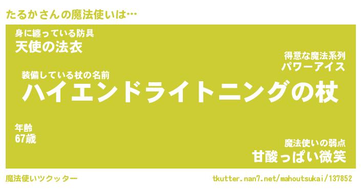 | ヒーロー風カッコイイあだ名 | 『スーパータルカ』『ウルトラたるかマン』 |