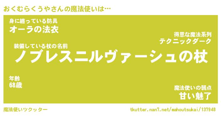 | 肩書あだ名 | 『おくむらくうや御曹司』 |