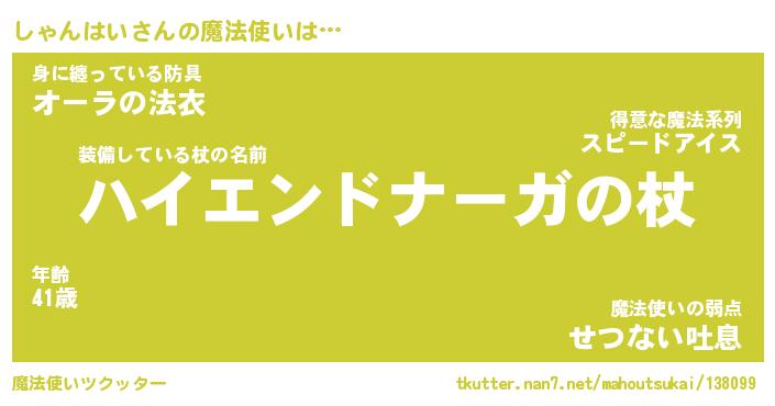 | 伝説のあだ名 | 『封印されしスナイパーしゃんはい』 |