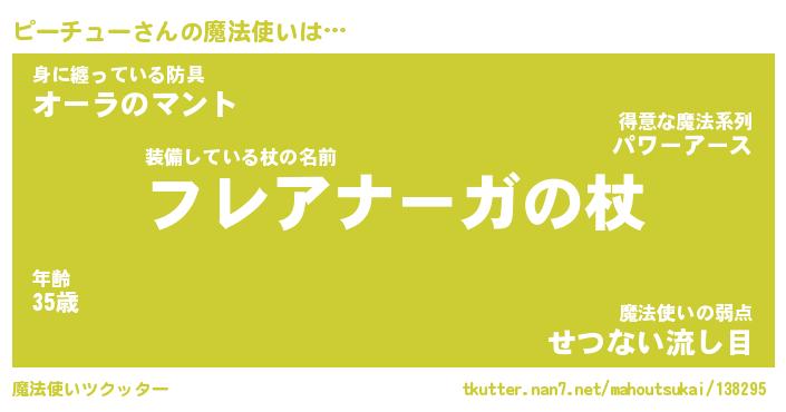 | 男性向けラノベタイトル風あだ名 | 『ピーチューの憂鬱』 |