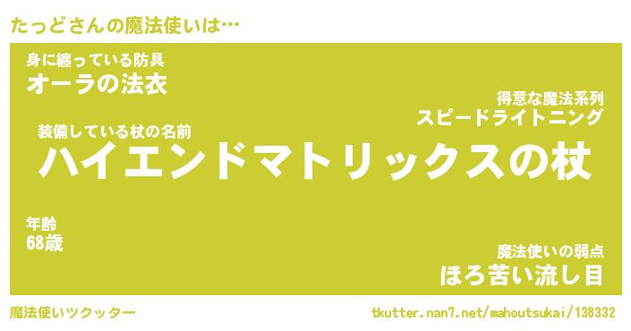 | ファンタジー風あだ名 | 『タッフェル』『エターナルタッドー』 |
