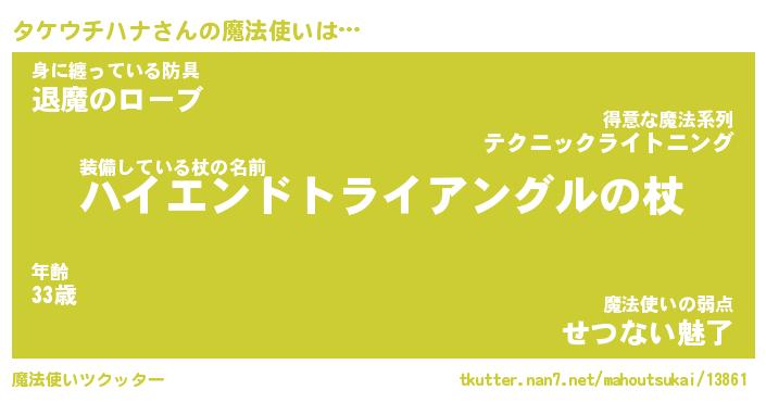 | 伝説のあだ名 | 『封印されし傭兵タケウチハナ』 |