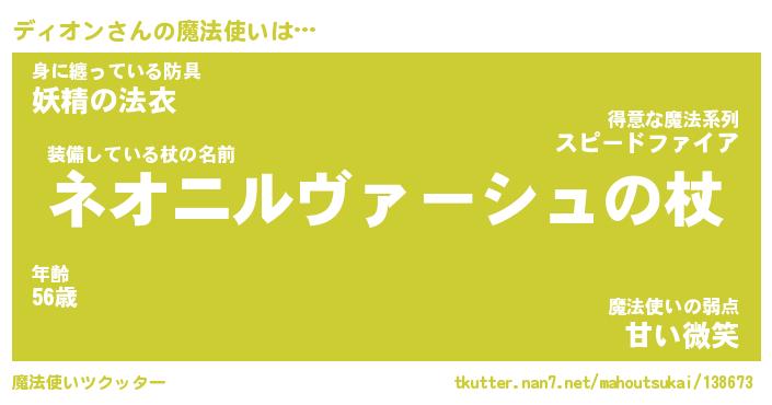 | 意味不明あだ名 | 『ペロリンディオン』『永久保存ディオン』 |
