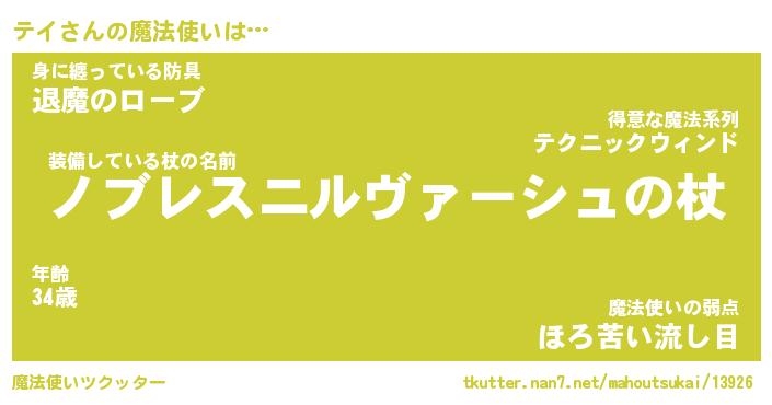 | ファンタジー風あだ名 | 『テイフェル』『エターナルテイー』 |