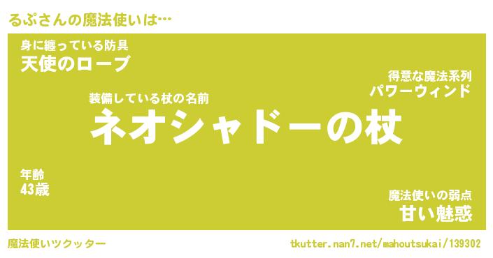 | 男性向けラノベタイトル風あだ名 | 『るぷの憂鬱』 |