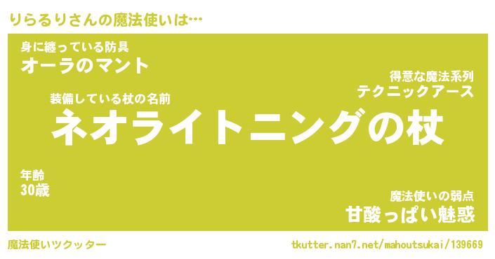 | ファンタジー風あだ名 | 『リラフェル』『エターナルリラルリー』 |