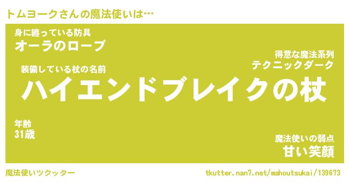 | ファンタジー風あだ名 | 『トムフェル』『エターナルトムヨークー』 |