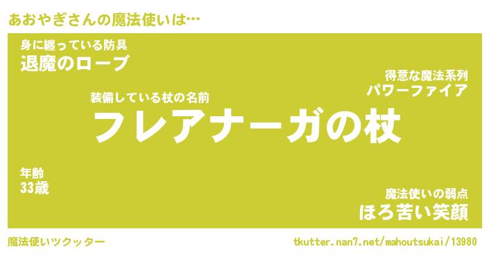 | ファンタジー風あだ名 | 『アオフェル』『エターナルアオヤギー』 |