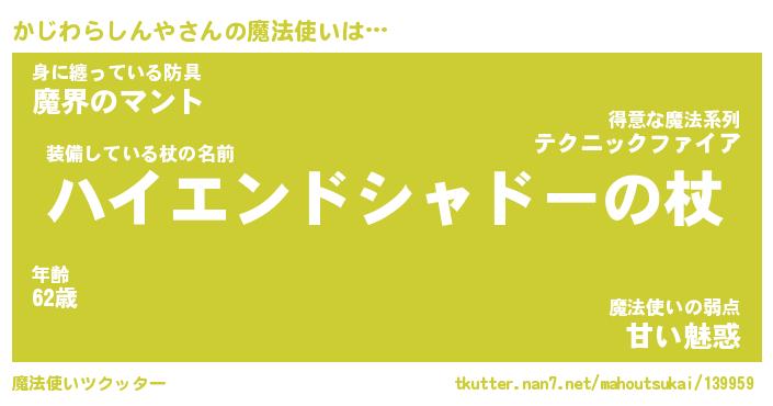 | 伝説のあだ名 | 『封印されし竜騎士かじわらしんや』 |