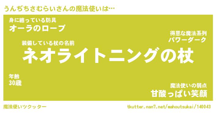 | 男性向けラノベタイトル風あだ名 | 『ウンヂチサムライアートオンライン』 |