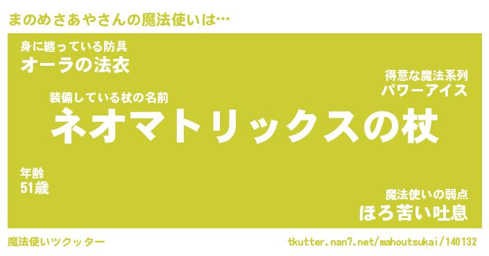 | 男性向けラノベタイトル風あだ名 | 『まのめさあやの憂鬱』 |