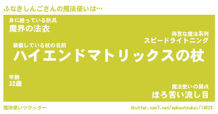 | 男性向けラノベタイトル風あだ名 | 『フナキシンゴアートオンライン』 |