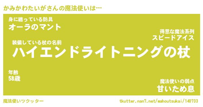 | ヒーロー風カッコイイあだ名 | 『スーパーカミカワタイガ』 |