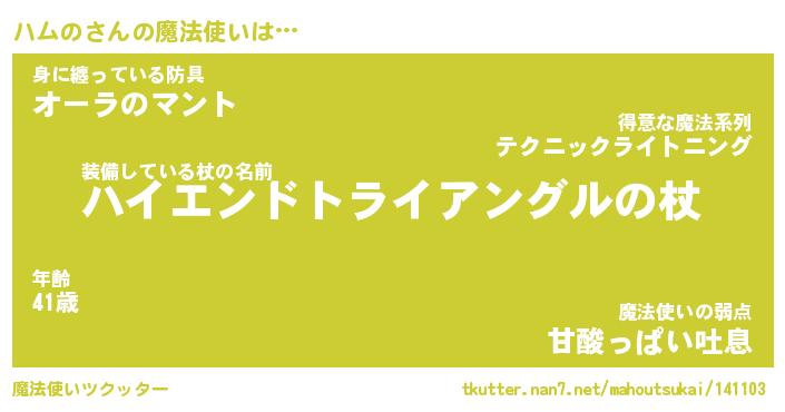 | ファンタジー風あだ名 | 『ハムフェル』『エターナルハムノー』 |
