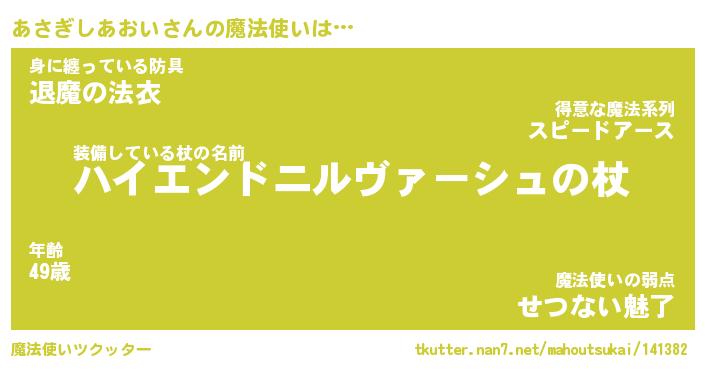 | 伝説のあだ名 | 『封印されしスナイパーあさぎしあおい』 |